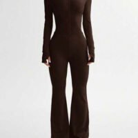 طقم رياضي نسائي بأكمام طويلة وبنطال ضيق باللون البني