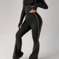 توب قصير مع فتحات للإبهام، سروال ضيق بخصر عالي