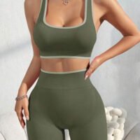 طقم نسائي رياضي من قطعتين باللون الزيتوني