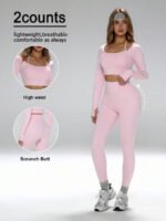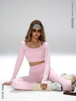 - اسم المنتج: توب قصير مع فتحات للإبهام، سروال ضيق بخصر عالي