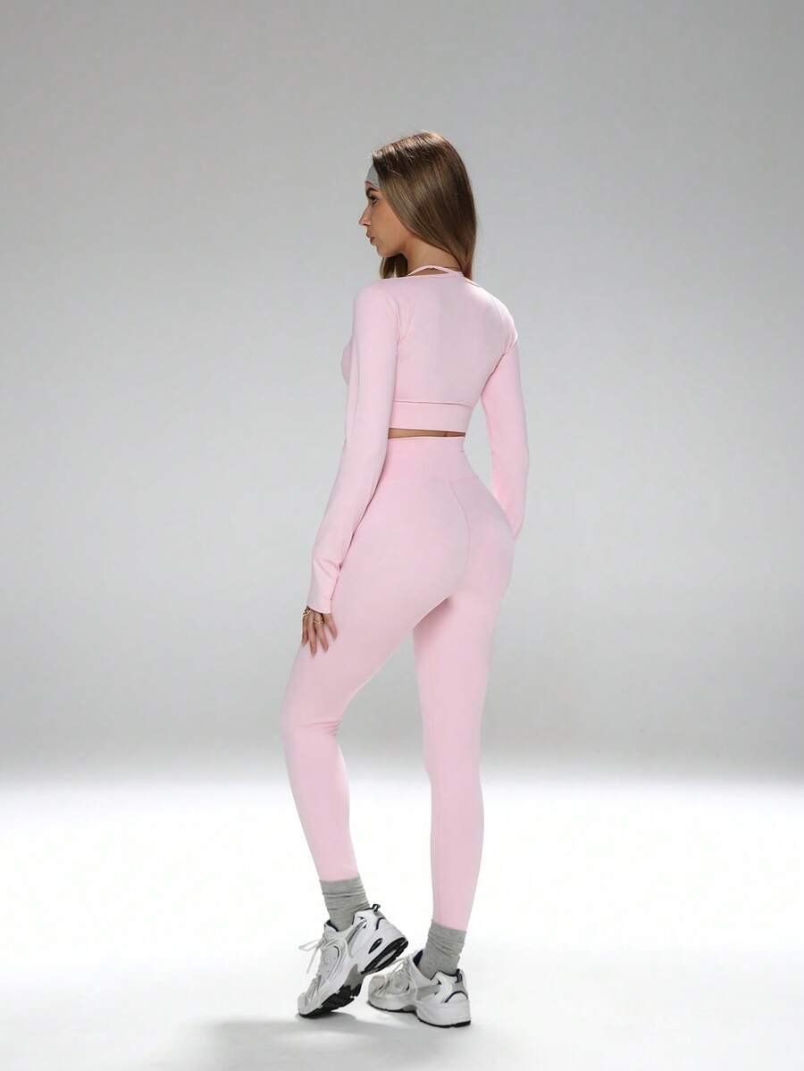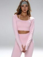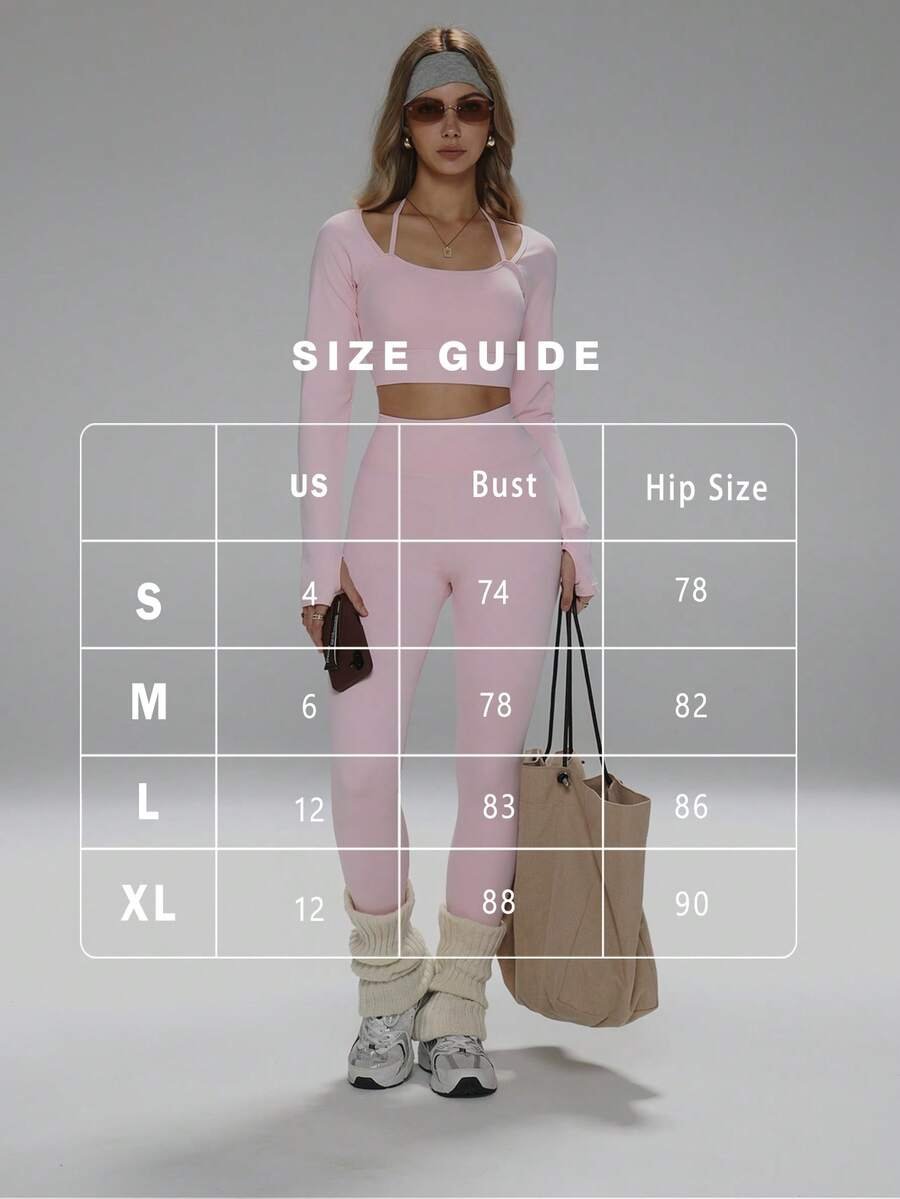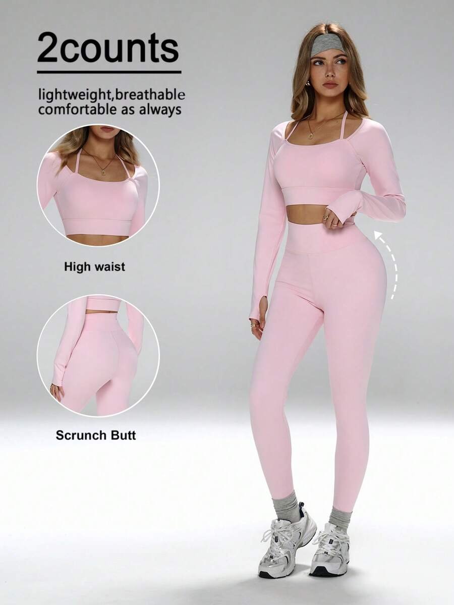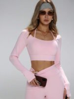 توب قصير مع فتحات للإبهام، سروال ضيق بخصر عالي