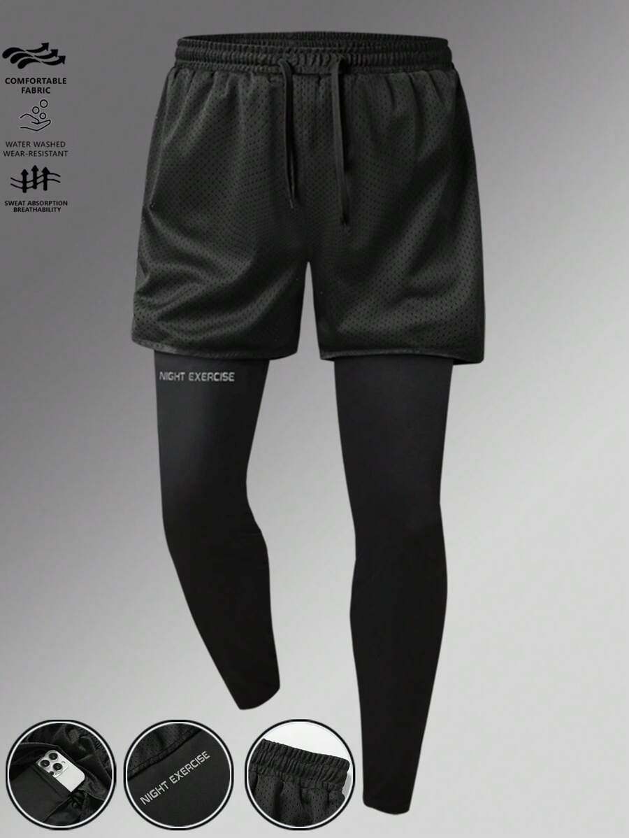 شورت مُحكم الضغط منسوج بشبكة تنفس يمتص العرق ومزود بجيب للهاتف