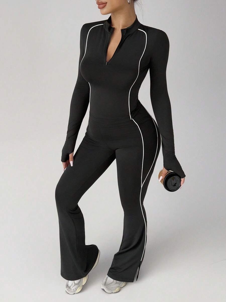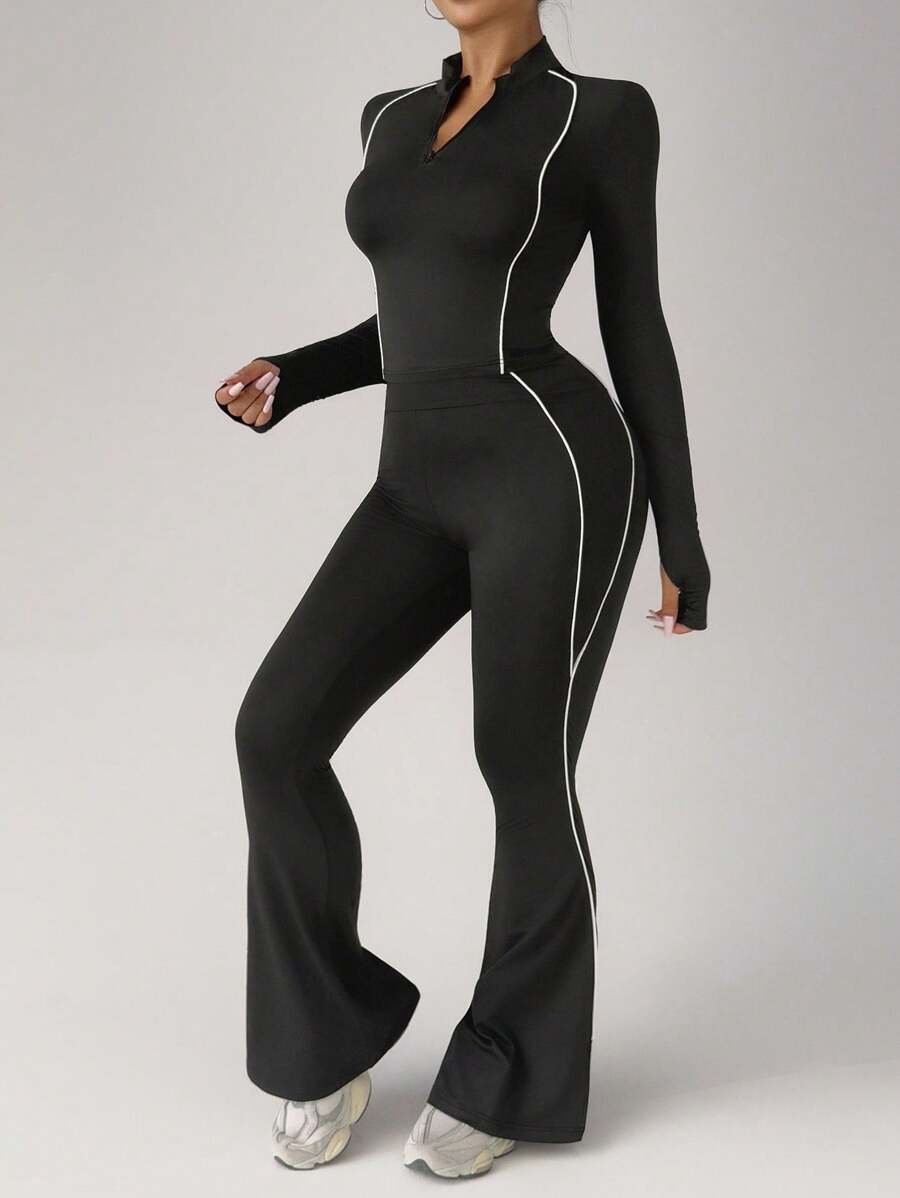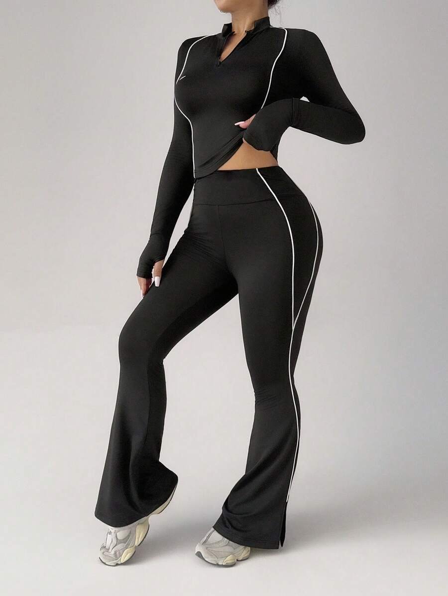 سيت رياضية نسائية باللونين الأسود والأبيض