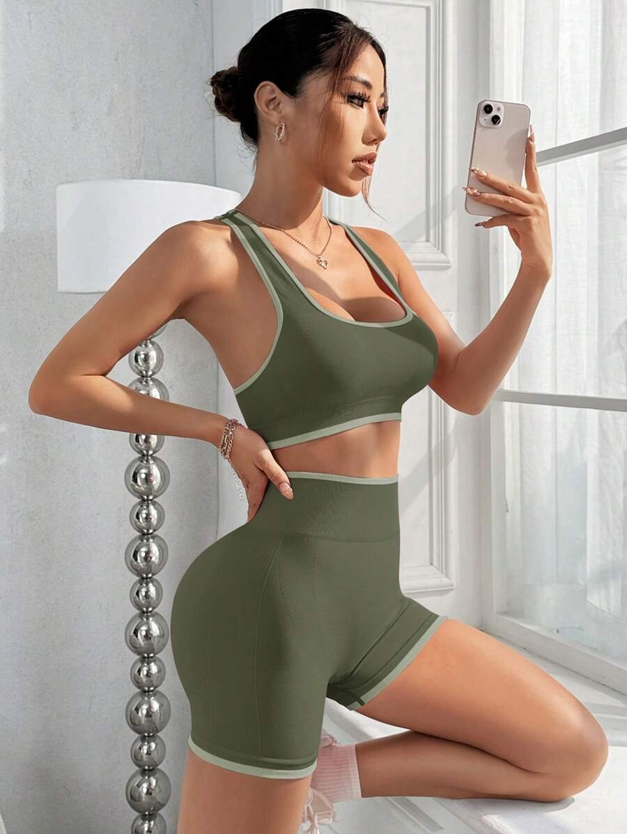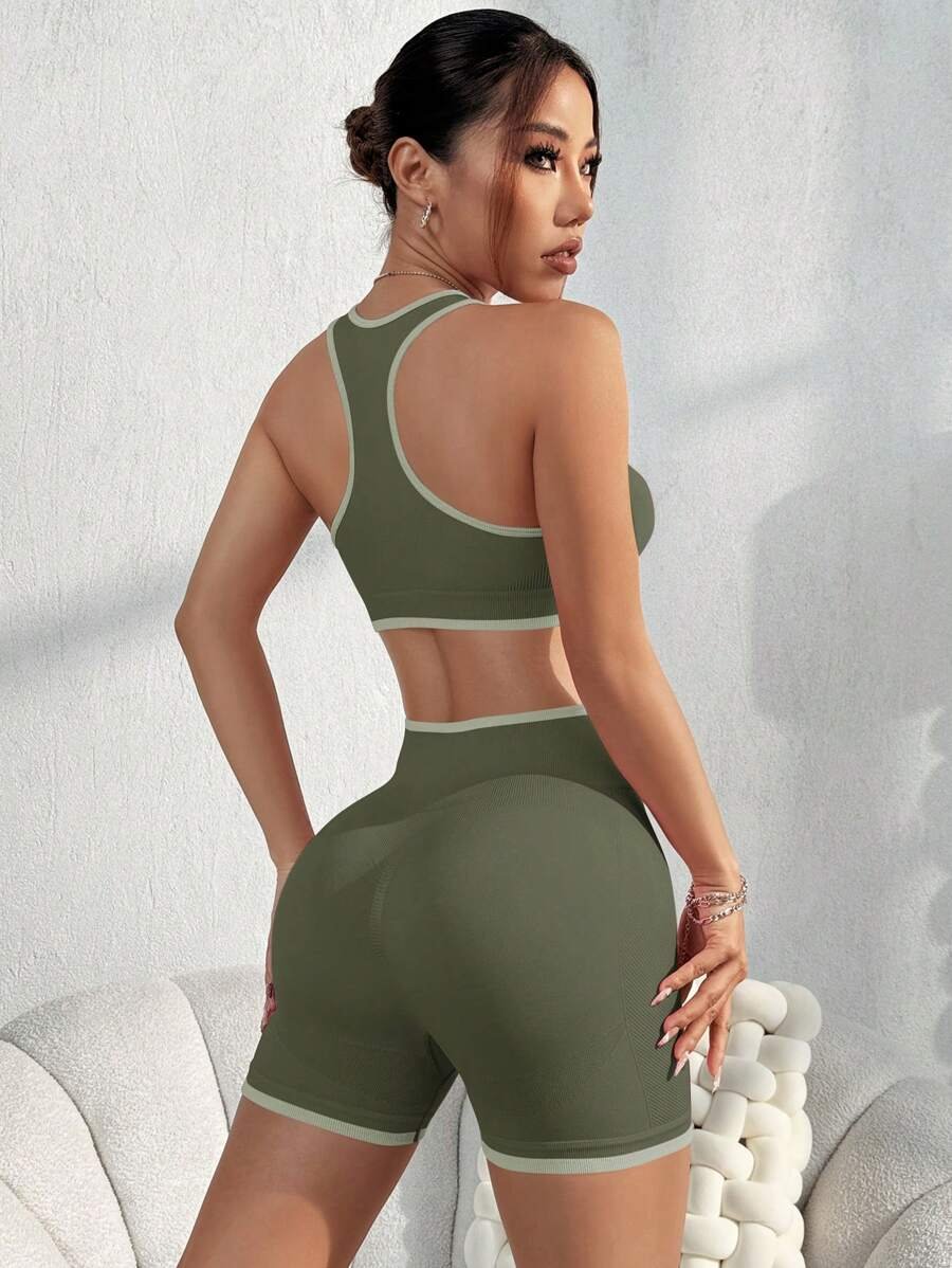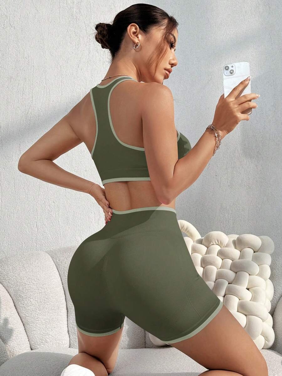 طقم نسائي رياضي من قطعتين باللون الزيتوني