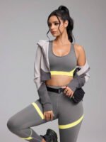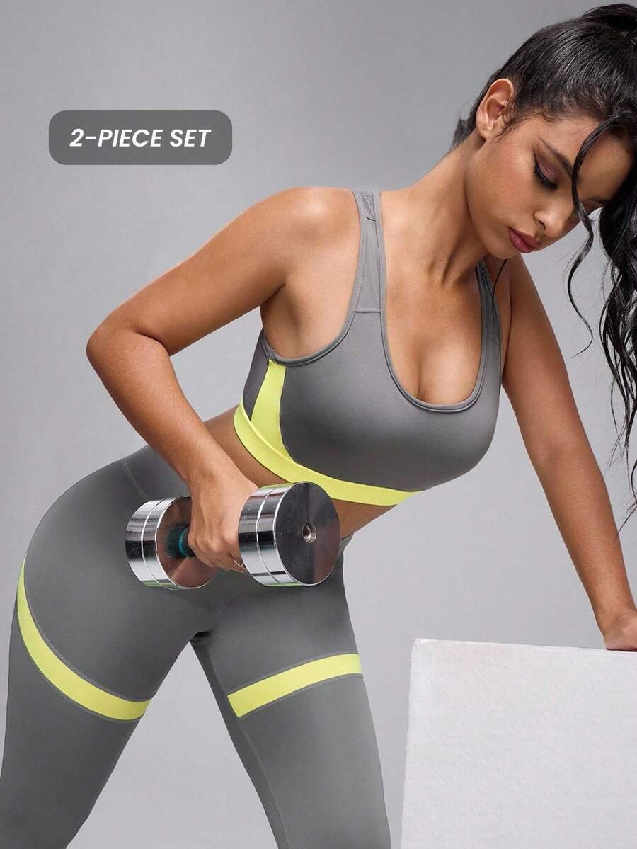 - اسم المنتج: طقم رياضي من توب قصير بألوان متباينة وسروال ضيق