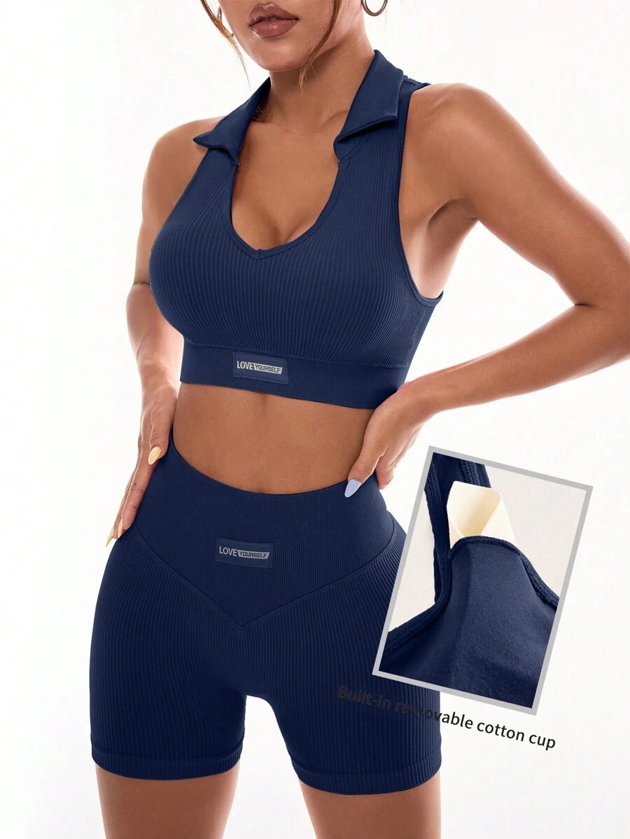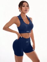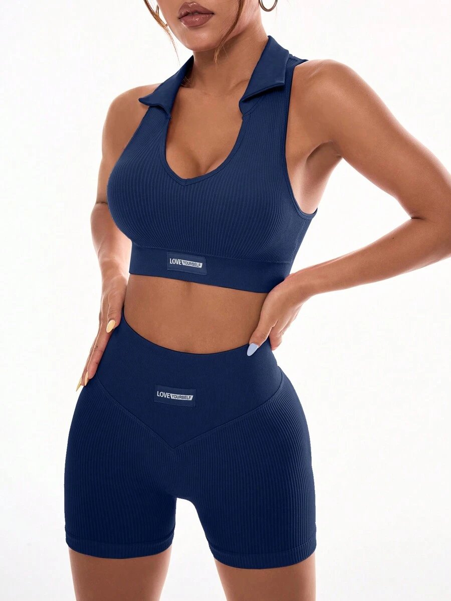 - اسم المنتج: طقم رياضي من صدرية ياقة بولو مع شورت بخصر عالي