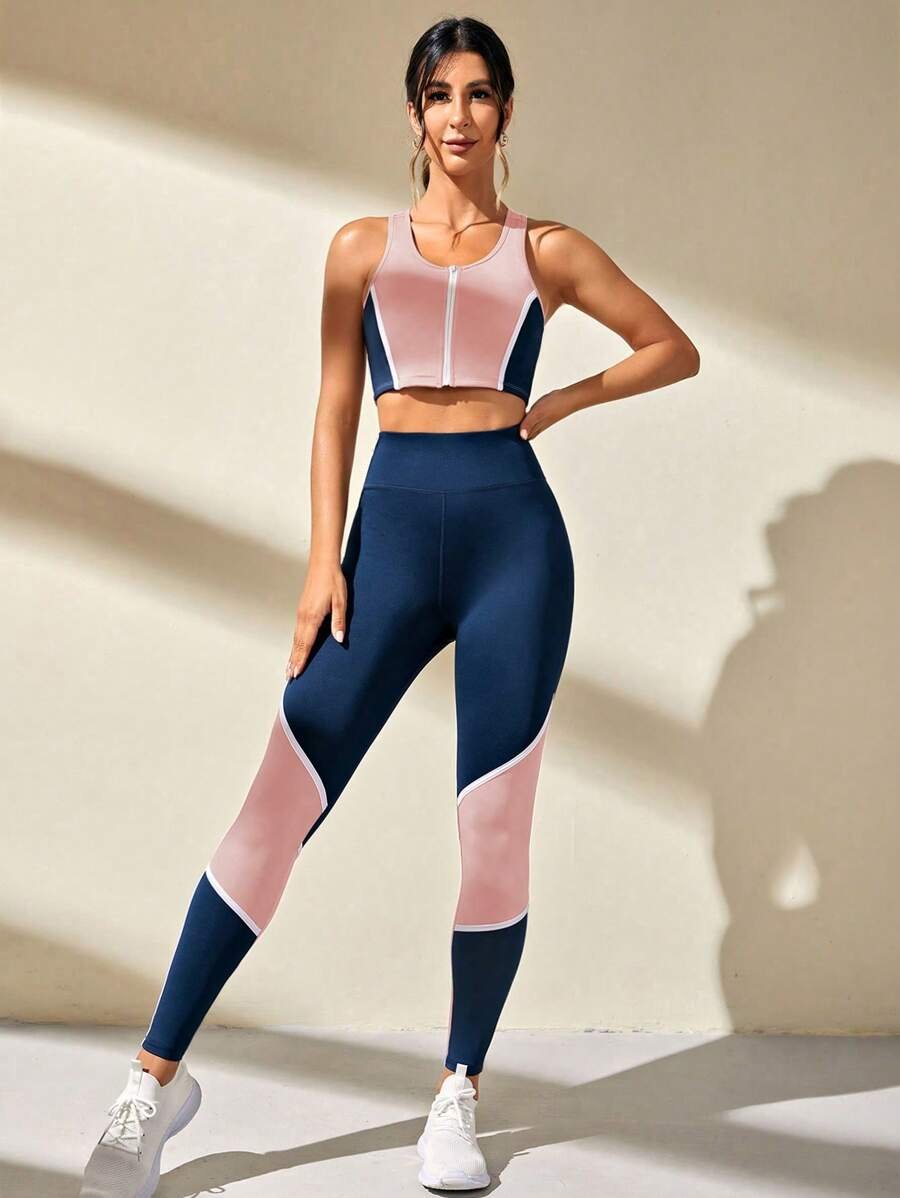 طقم رياضي من توب قصير بألوان متباينة وسروال ضيق